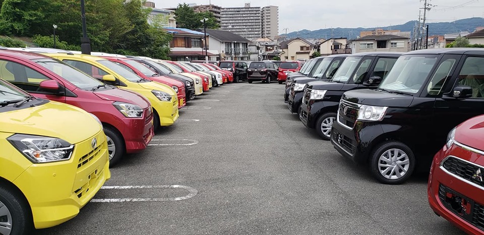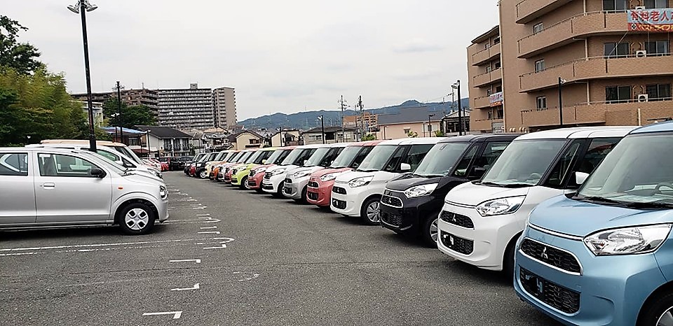 ものすごく広いスペースに軽自動車がいっぱい並んでいて