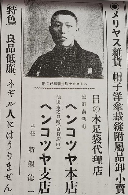 日の本足袋の代理店を特約して本店支店ともに繁昌しました。