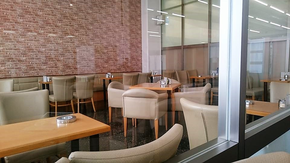 ガラスで仕切られた喫煙席も広々としています↓