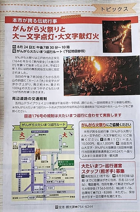 ★がんがら火祭り 大一文字点灯・大文字献灯8月24日(土)五月山中腹~池田市役所周辺