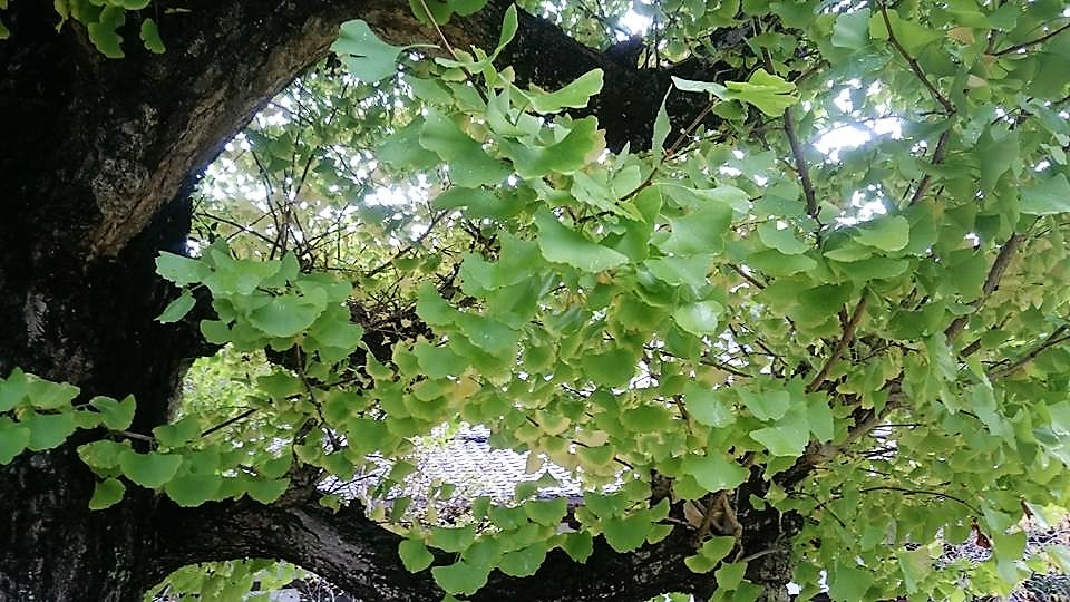 閉じて空を見ると、葉っぱでできた自然の屋根が!