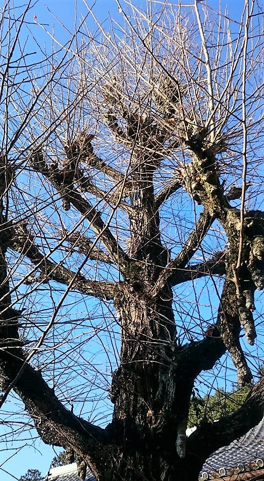 真っ黄色な葉っぱをいっぱいつけていた銀杏が丸坊主(^^)