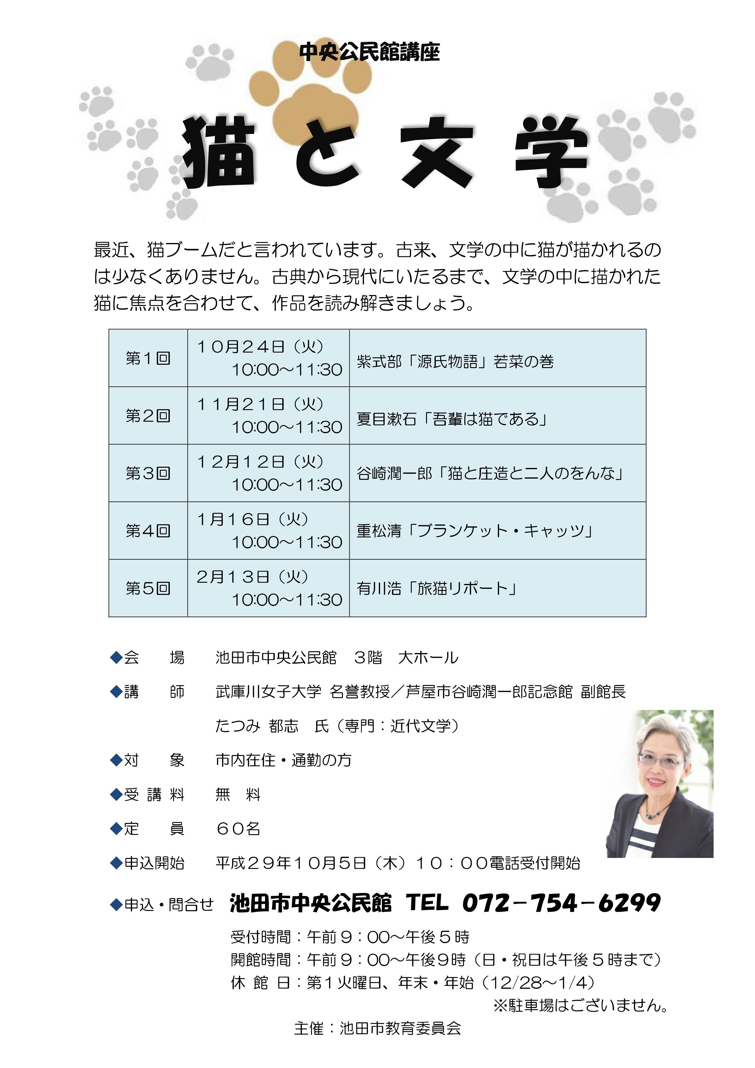 「猫と文学」秋らしいテーマの講座です(^^)/