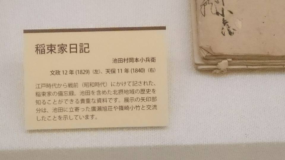 「稲束家日記」として残る膨大な日記は池田の歴史を知る貴重な資料です。